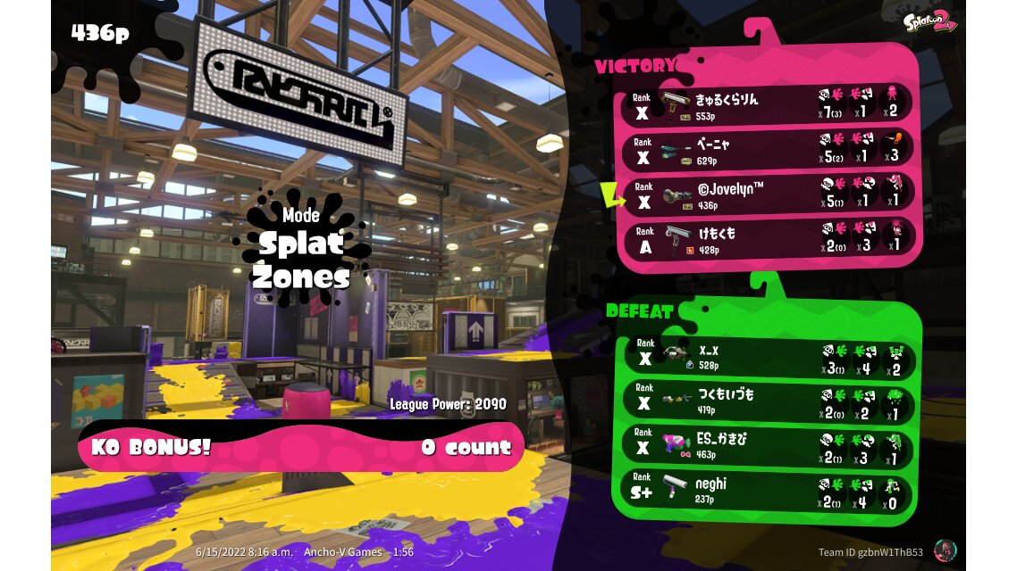 | Mode | Splat Zones - League Battle (Twin) | ||||||||||||||||||||||||||||||||||||||||