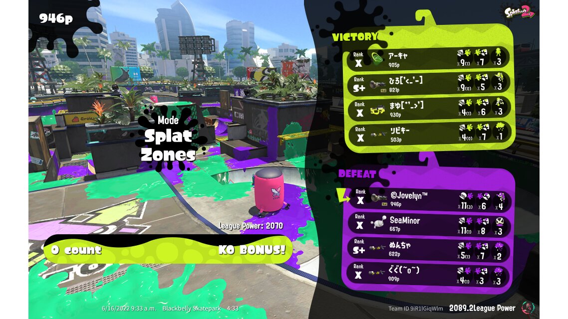 | Mode | Splat Zones - League Battle (Twin) | ||||||||||||||||||||||||||||||||||||||||