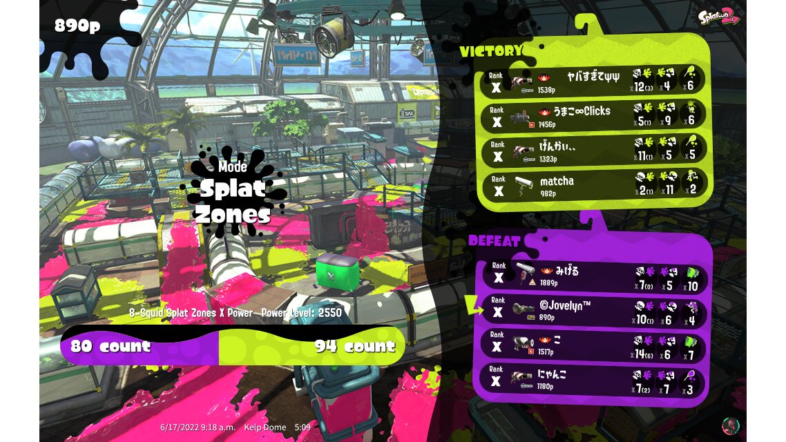| Mode | Splat Zones - Ranked Battle | ||||||||||||||||||||||||||||||||||||||||