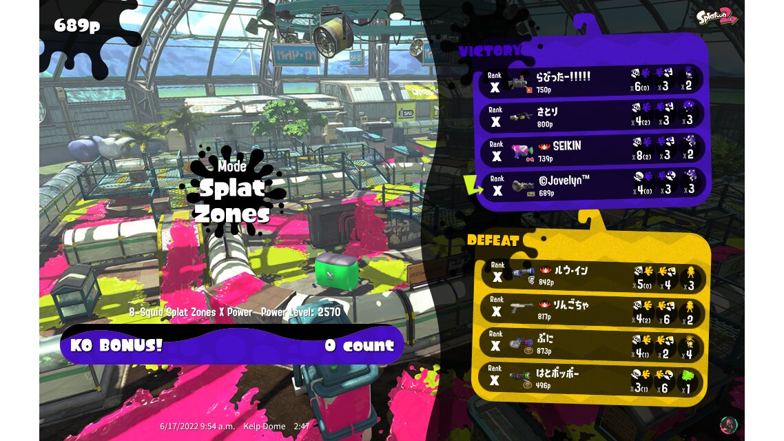 | Mode | Splat Zones - Ranked Battle | ||||||||||||||||||||||||||||||||||||||||