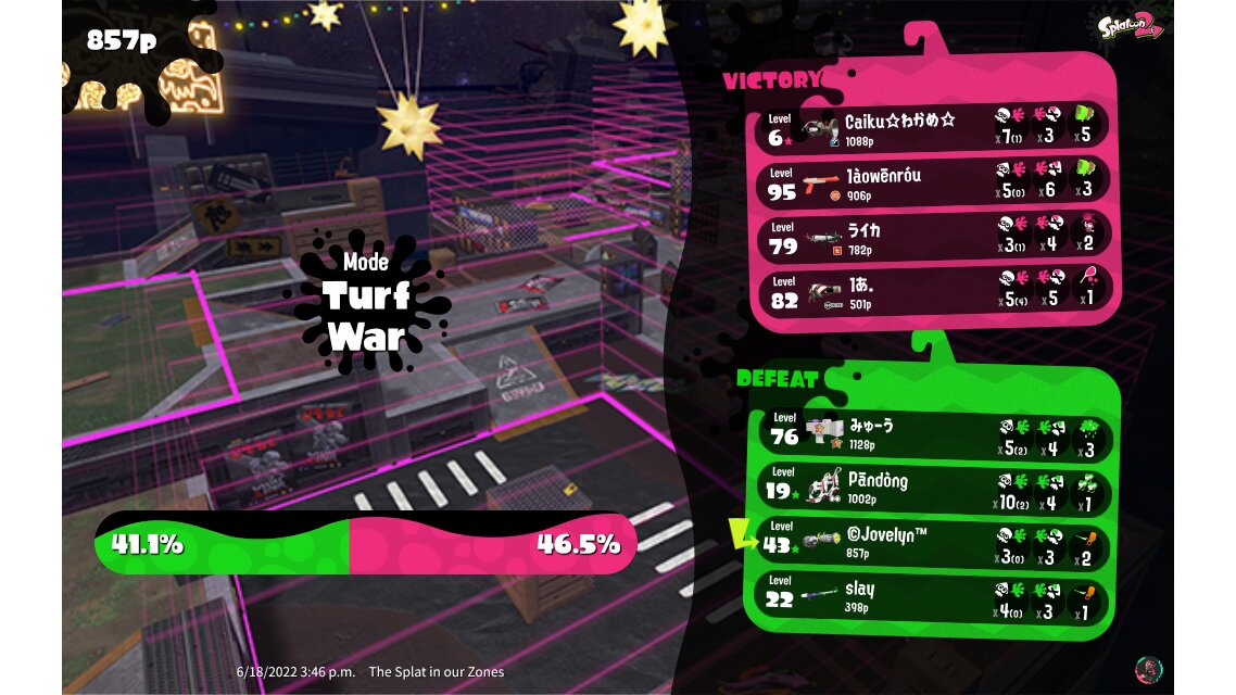 | Mode | Turf War - Private Battle | ||||||||||||||||||||||||||||||||||