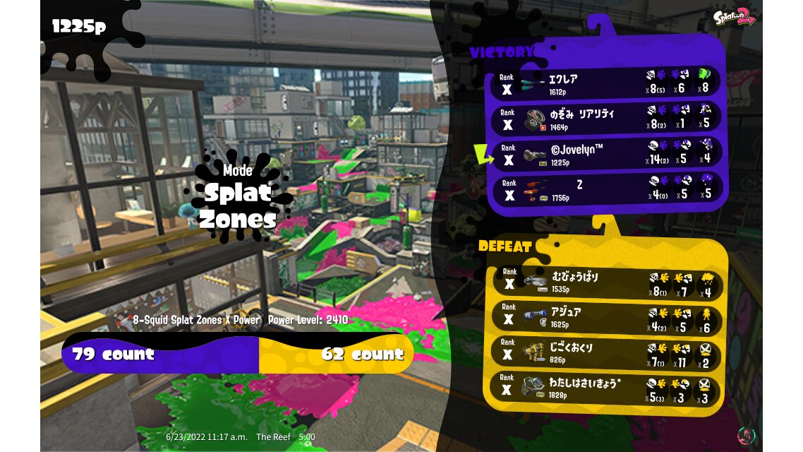 | Mode | Splat Zones - Ranked Battle | |||||||||||||||||||||||||||||||||||||
