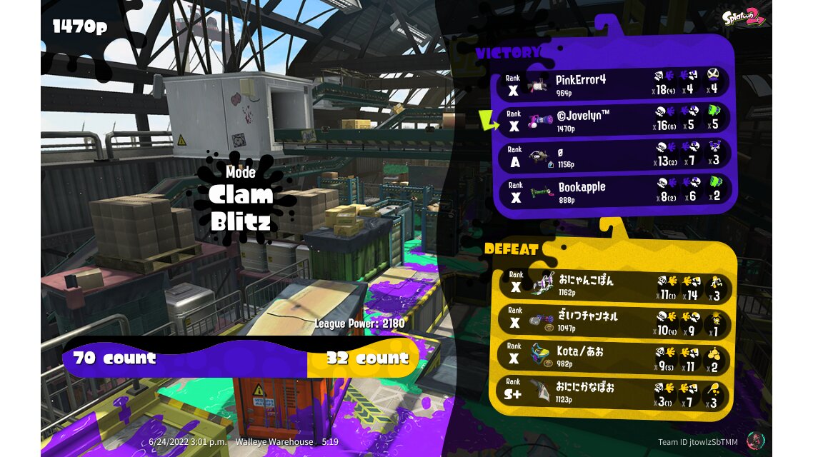| Mode | Clam Blitz - League Battle (Quad) | |||||||||||||||||||||||||||||||