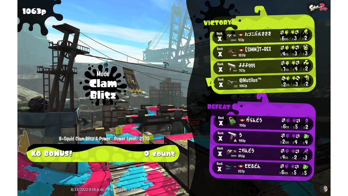 | Mode | Clam Blitz - Ranked Battle | ||||||||||||||||||||||||||||||||||||||||