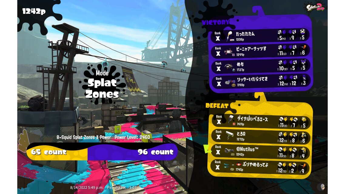 | Mode | Splat Zones - Ranked Battle | ||||||||||||||||||||||||||||||||||||||||