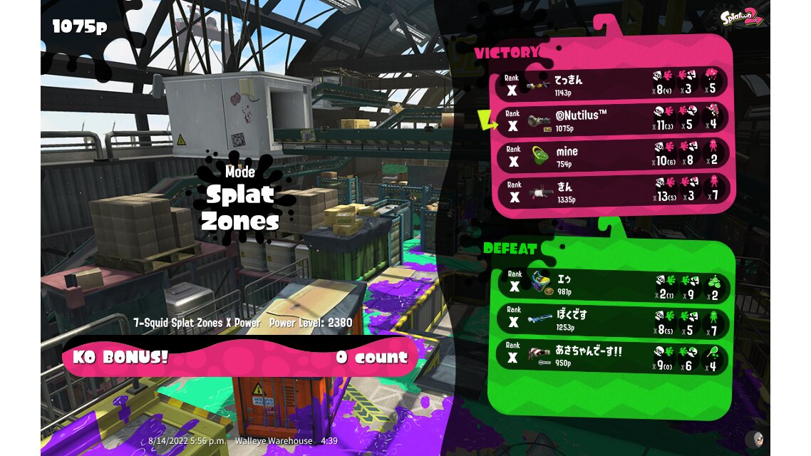 | Mode | Splat Zones - Ranked Battle | ||||||||||||||||||||||||||||||||||||||||