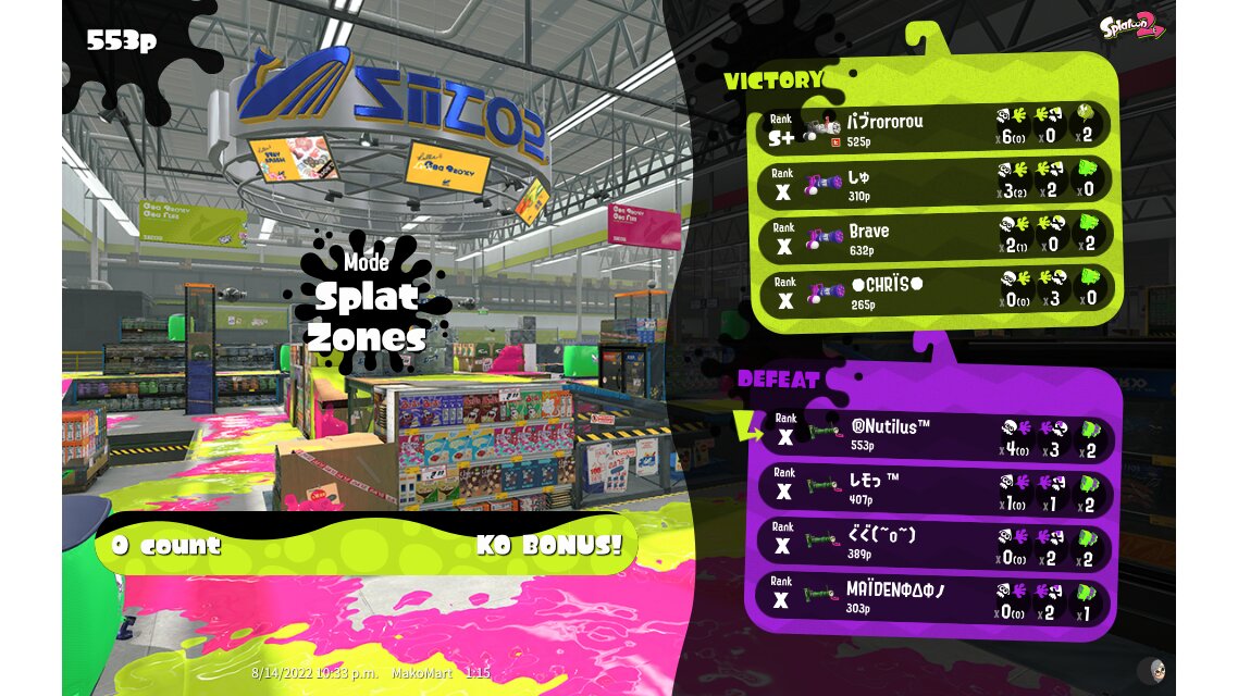 | Mode | Splat Zones - Private Battle | ||||||||||||||||||||||||||||||||||||||||||||||