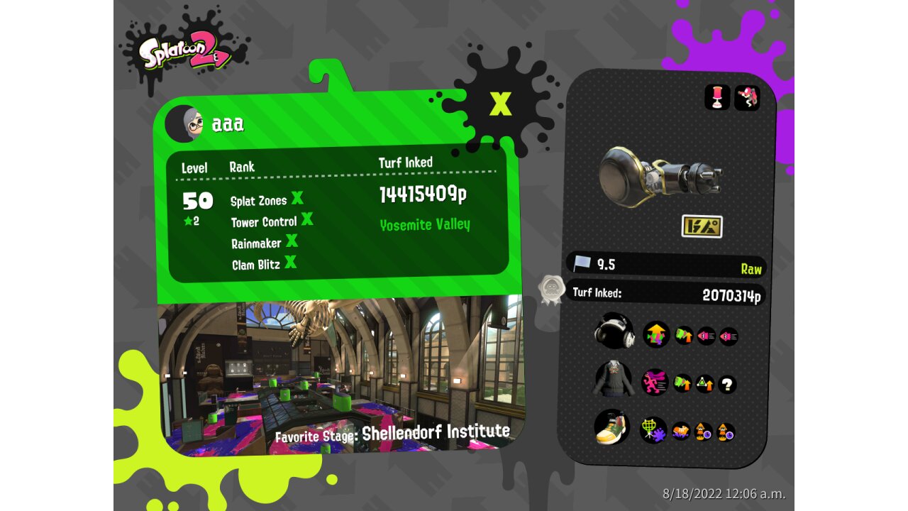 | SplatNet Battle # | 17,393 | |||||||||||||||||||||||||||||||||||||||||||