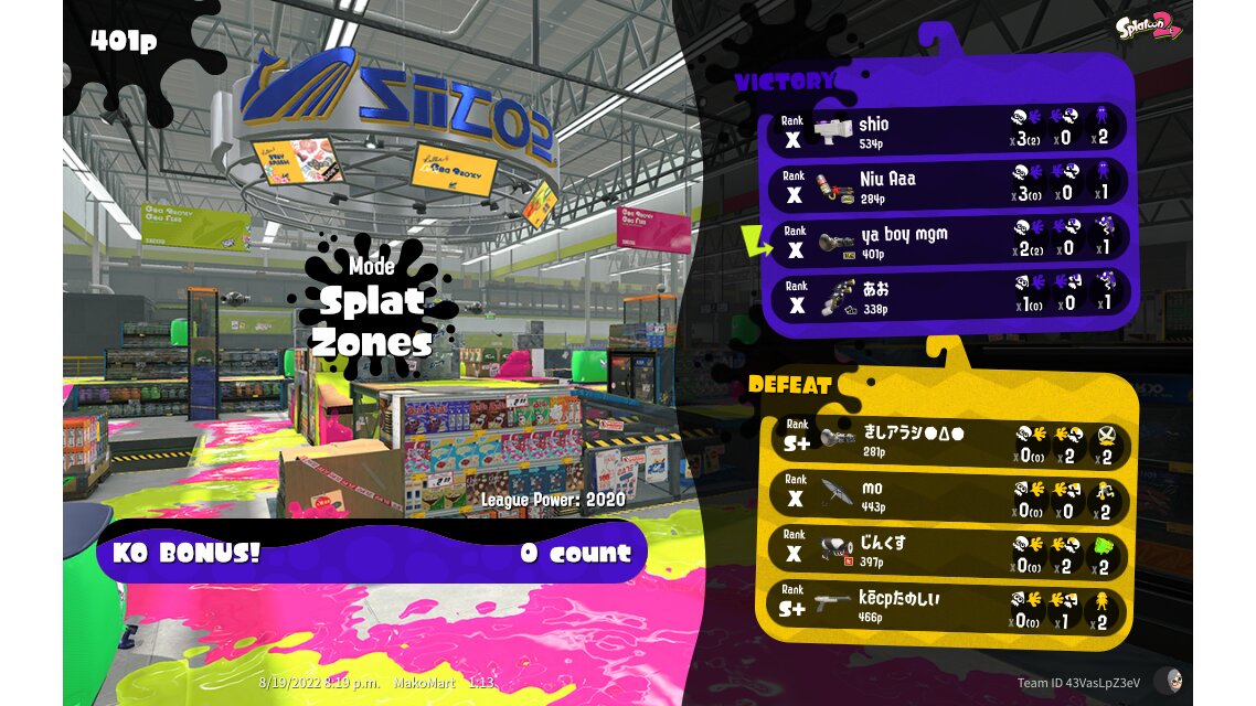 | Mode | Splat Zones - League Battle (Quad) | ||||||||||||||||||||||||||||||||||||||||||||||