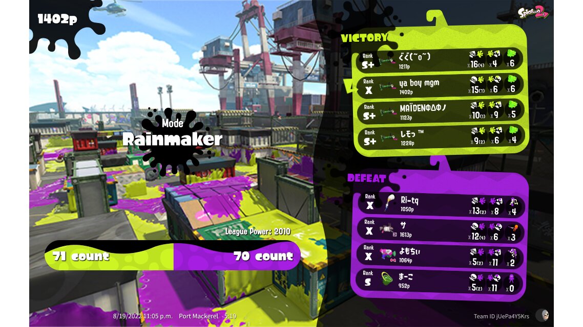 | SplatNet Battle # | 17,419 | ||||||||||||||||||||||||||||||||||||||||