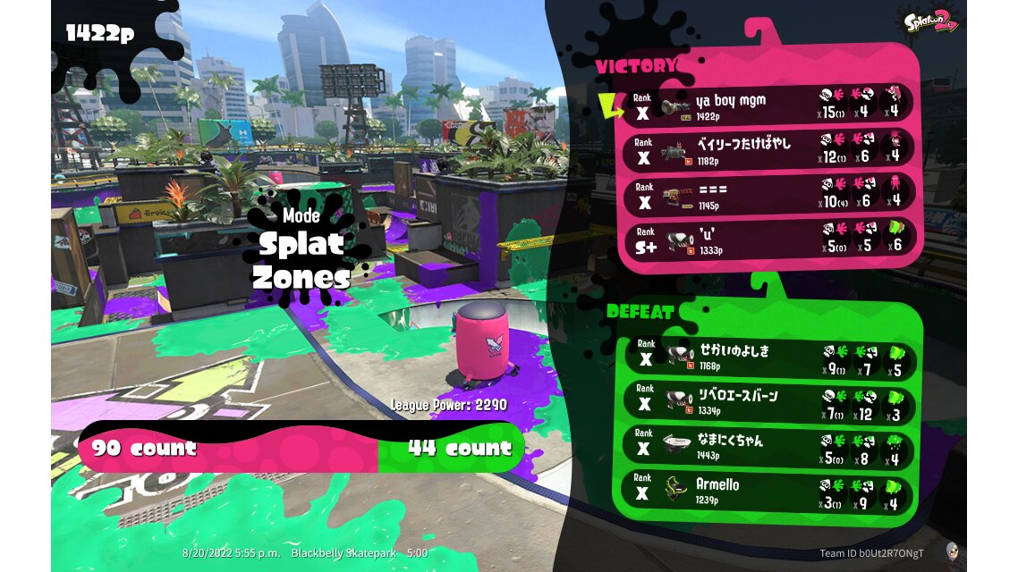 | Mode | Splat Zones - League Battle (Twin) | ||||||||||||||||||||||||||||||||||||||||||||||