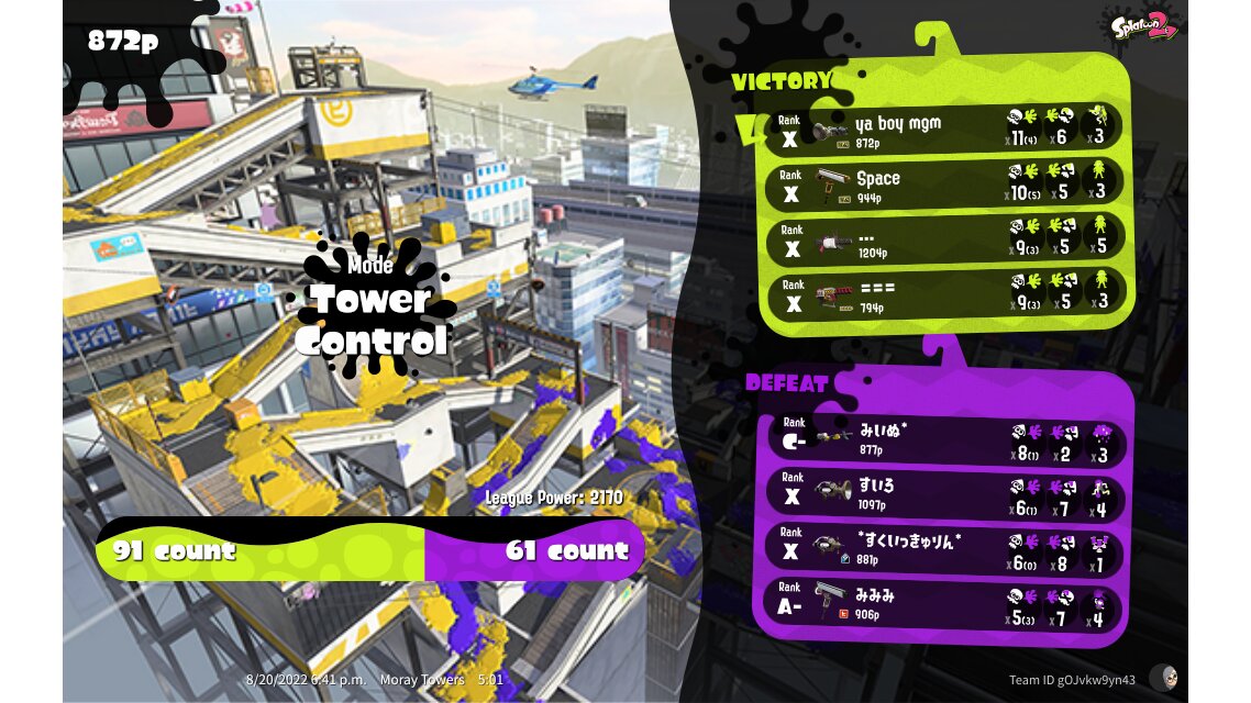 | Mode | Tower Control - League Battle (Quad) | ||||||||||||||||||||||||||||||||||||||||||||||