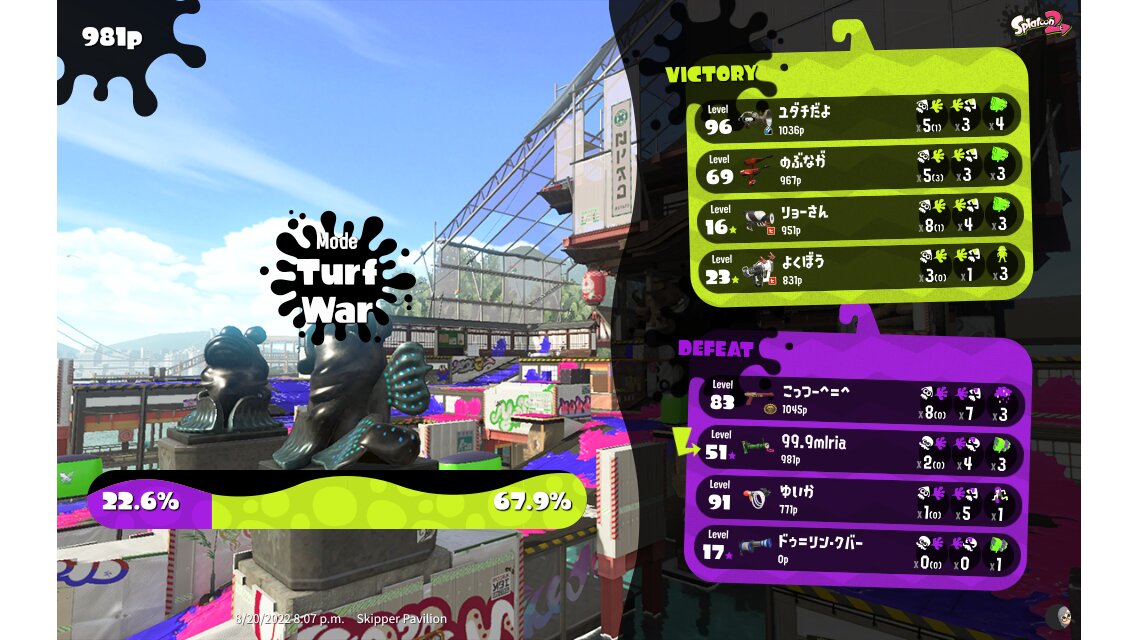 | Mode | Turf War - Regular Battle | ||||||||||||||||||||||||||||