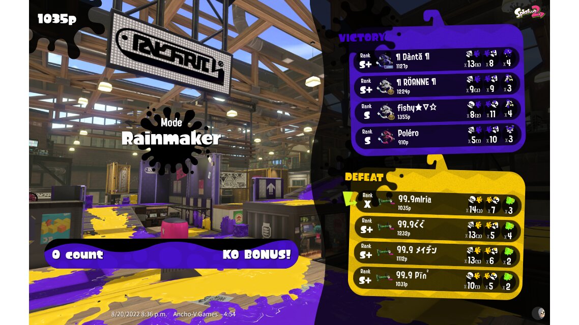 | Mode | Rainmaker - Private Battle | ||||||||||||||||||||||||||||