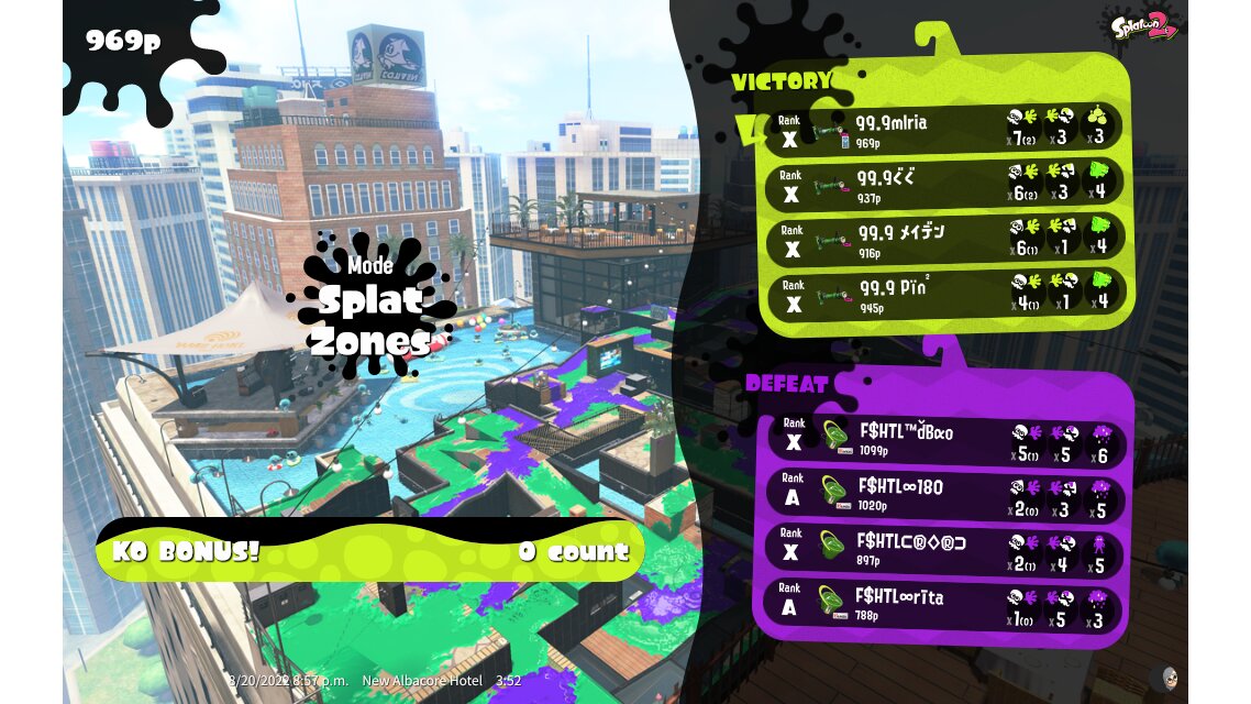 | Mode | Splat Zones - Private Battle | ||||||||||||||||||||||||||||