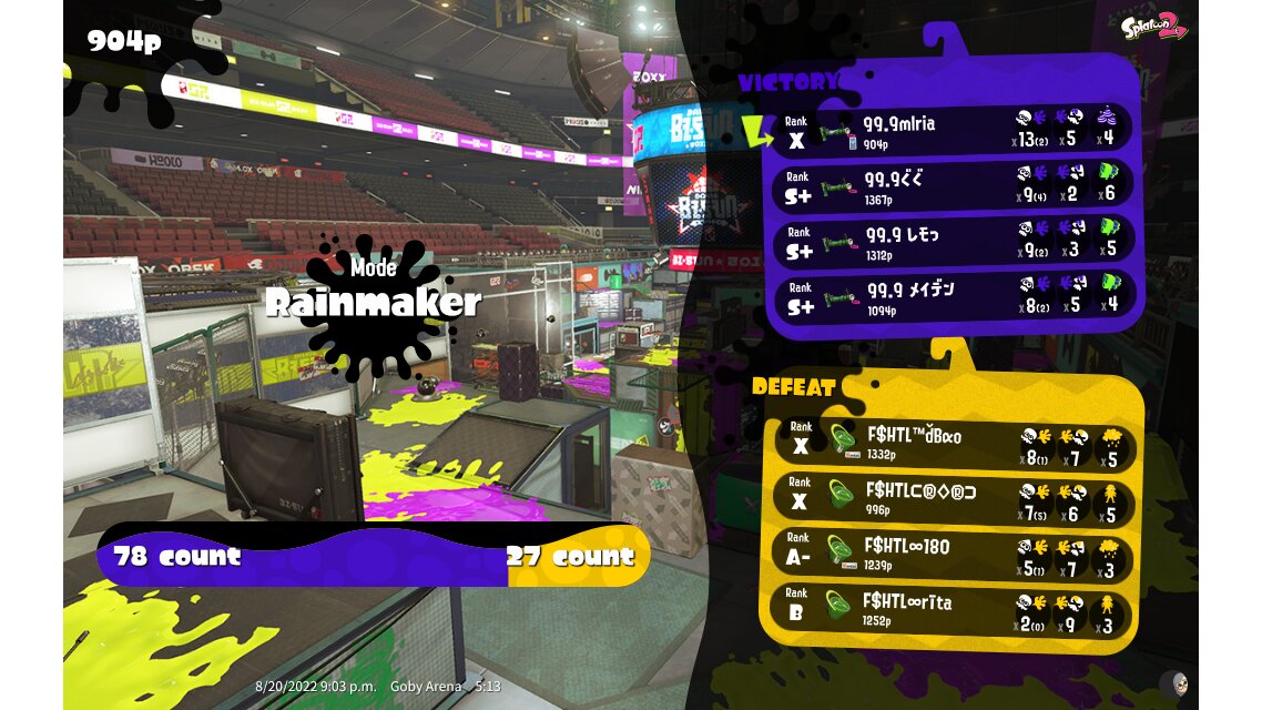 | SplatNet Battle # | 17,477 | ||||||||||||||||||||||||||||