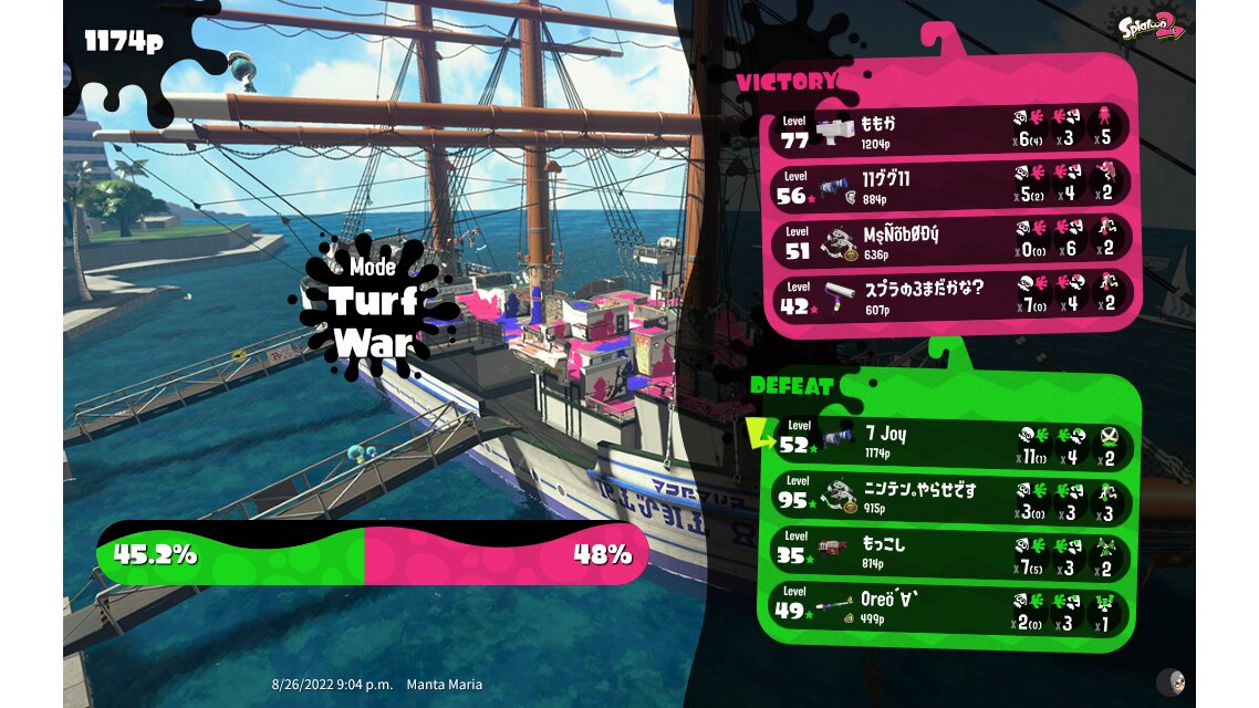 | Mode | Turf War - Regular Battle | |||||||||||||||||||||||||||||||||||||
