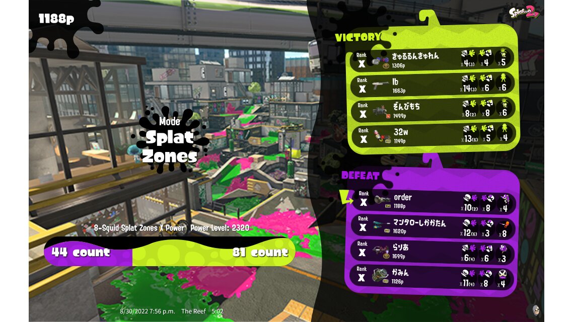 | Mode | Splat Zones - Ranked Battle | ||||||||||||||||||||||||||||||||||||||||||||||