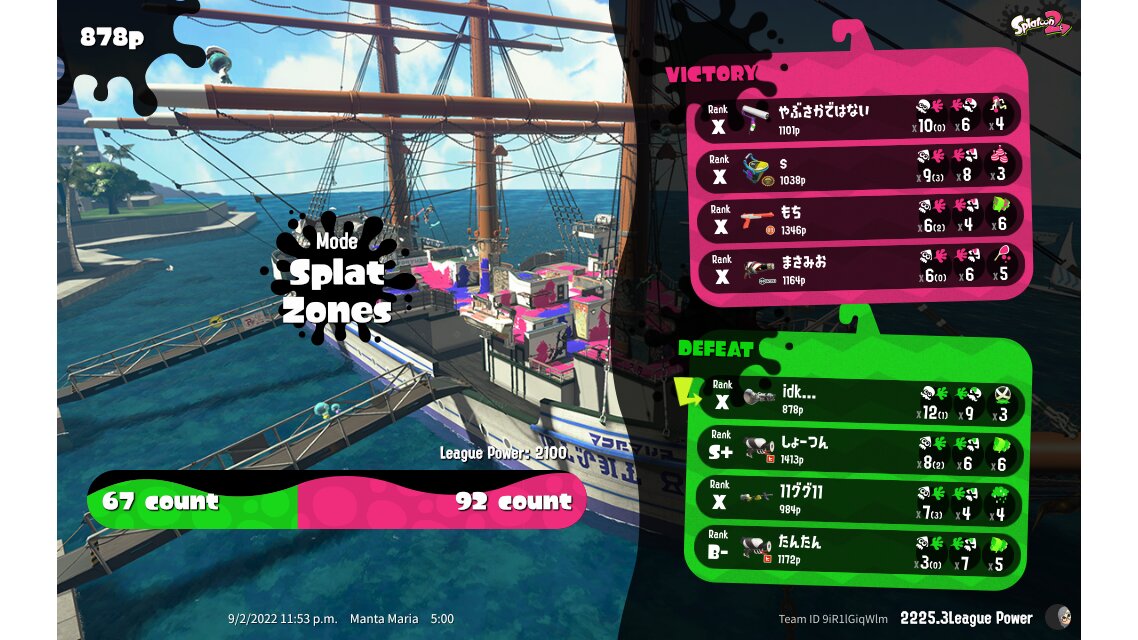 | Mode | Splat Zones - League Battle (Twin) | ||||||||||||||||||||||||||||||||||
