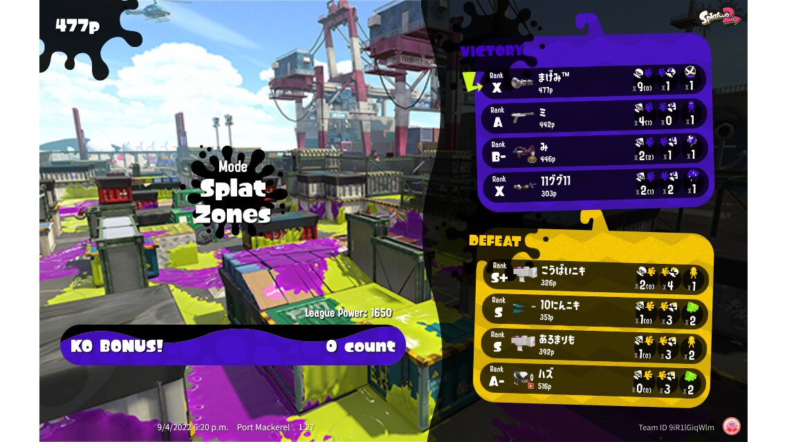 | Mode | Splat Zones - League Battle (Twin) | |||||||||||||||||||||||||||||||||||||