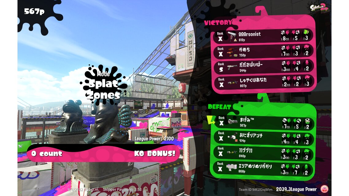 | Mode | Splat Zones - League Battle (Twin) | |||||||||||||||||||||||||||||||||||||