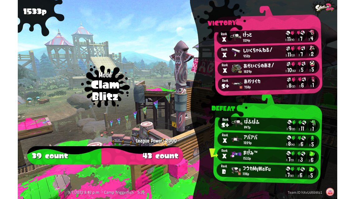 Mode | Clam Blitz - League Battle (Quad) | |||||||||||||||||||||||||||||||