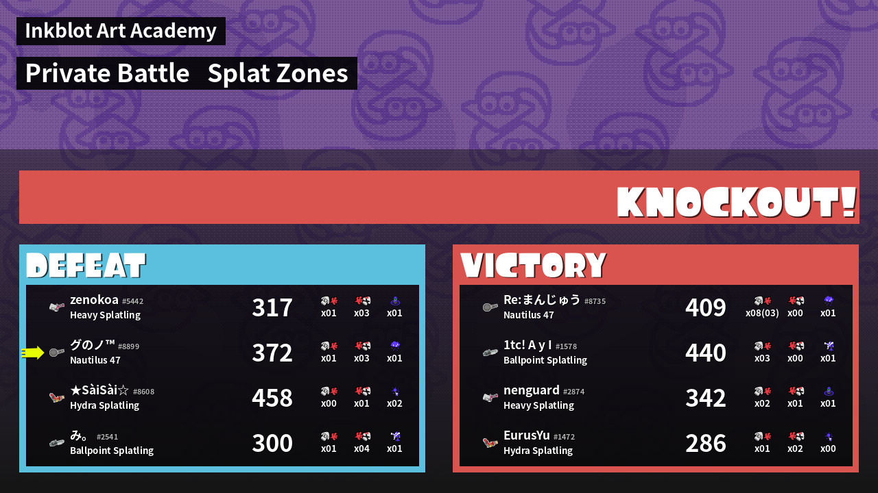 | Medals | #1 Overall Splatter #1 Enemy Splatter #1 Splat Zone Hero | ||