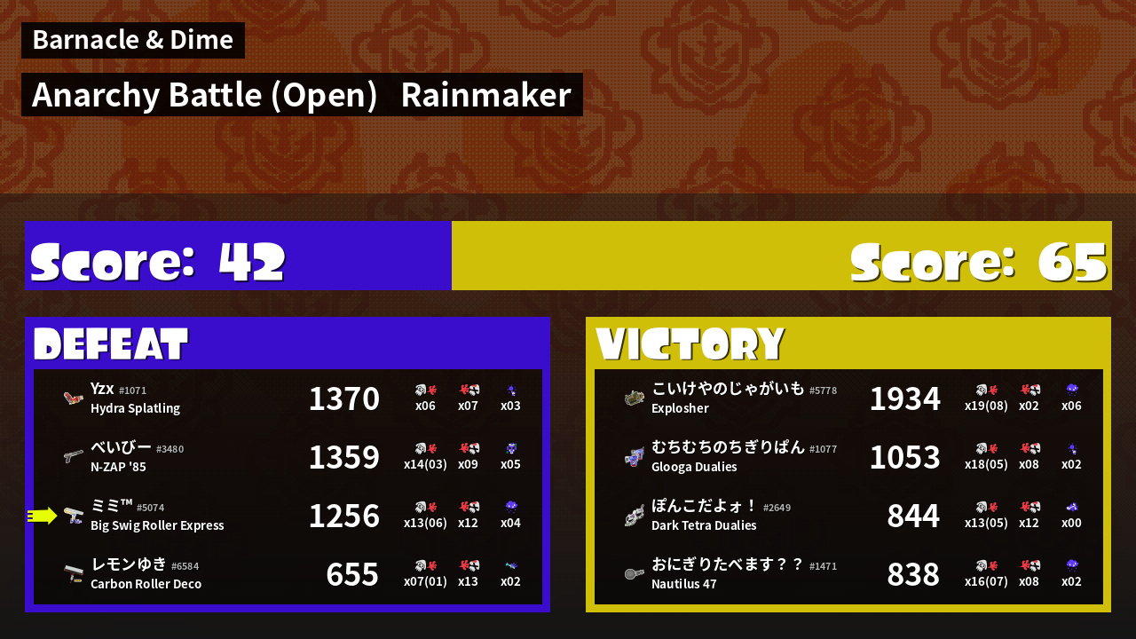 | Mode | Rainmaker - Anarchy Battle (Open) | ||
