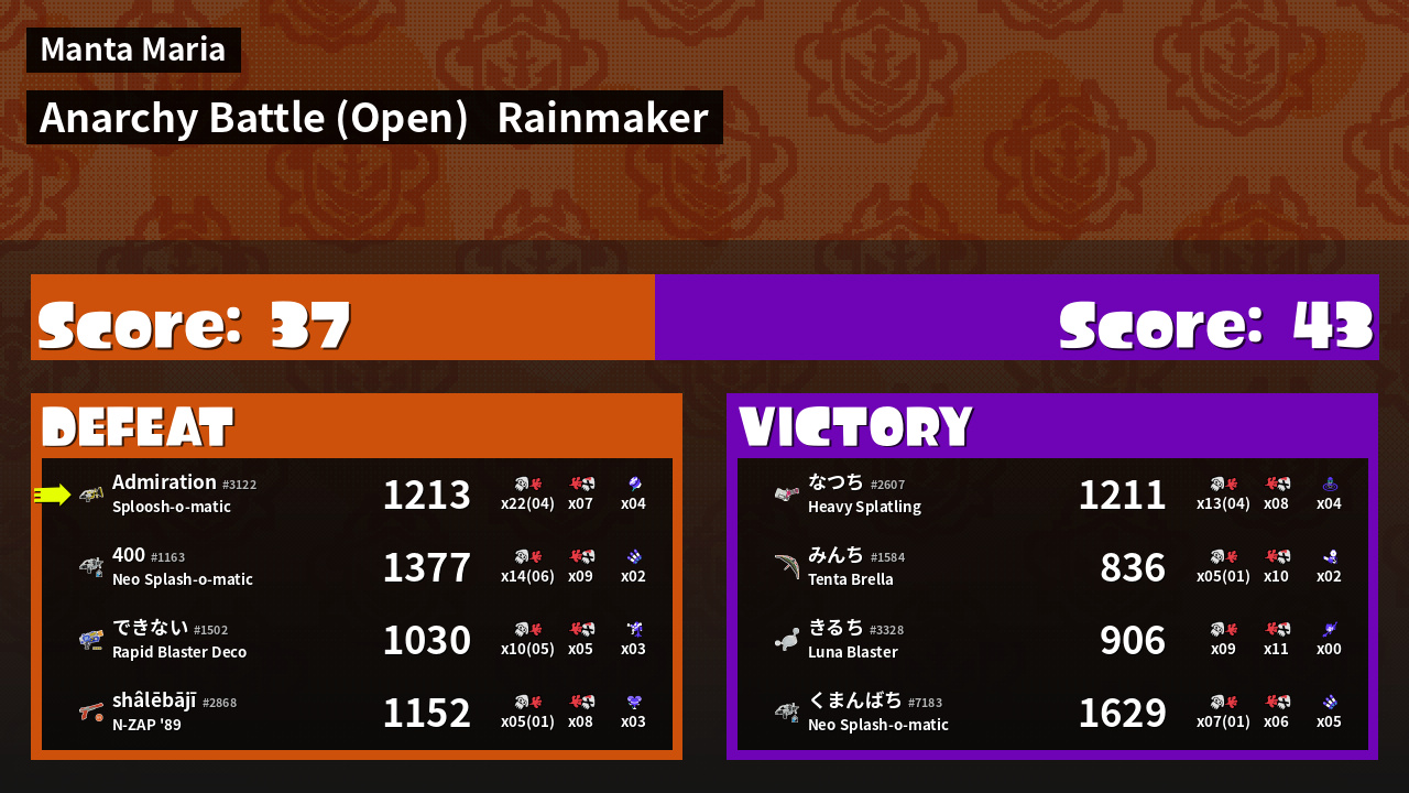 | Mode | Rainmaker - Anarchy Battle (Open) | ||