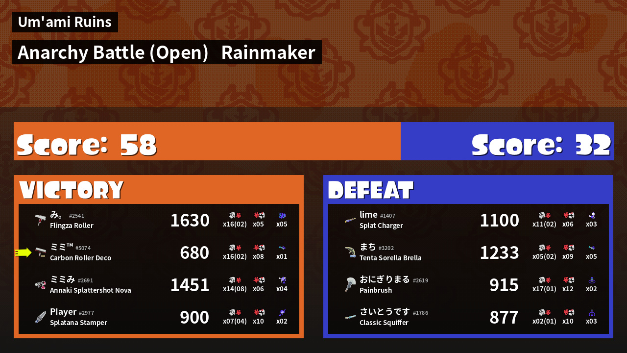 Name | Weapon | Inked | ![]() |