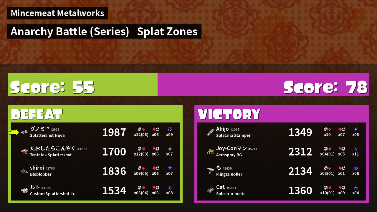 Name | Weapon | Inked | ![]() |