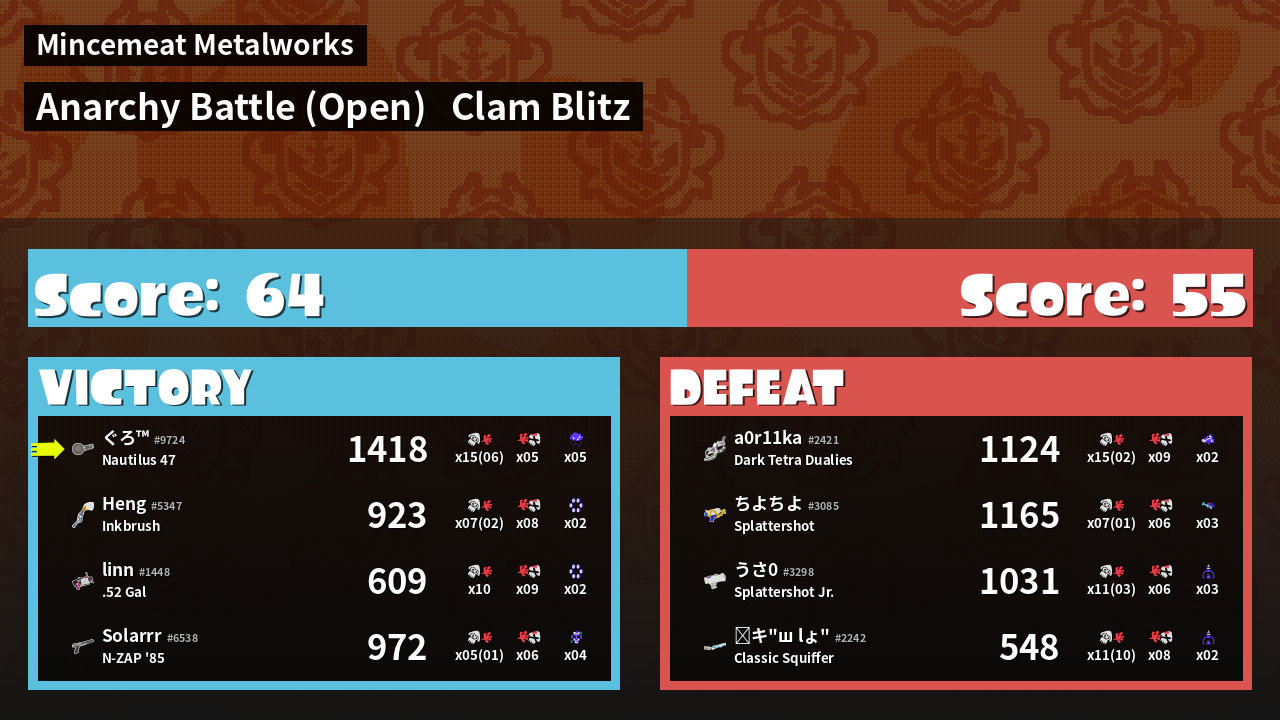 Kills / Deaths | 9 + 6 / 5 > Kill Ratio: 1.80 | ||