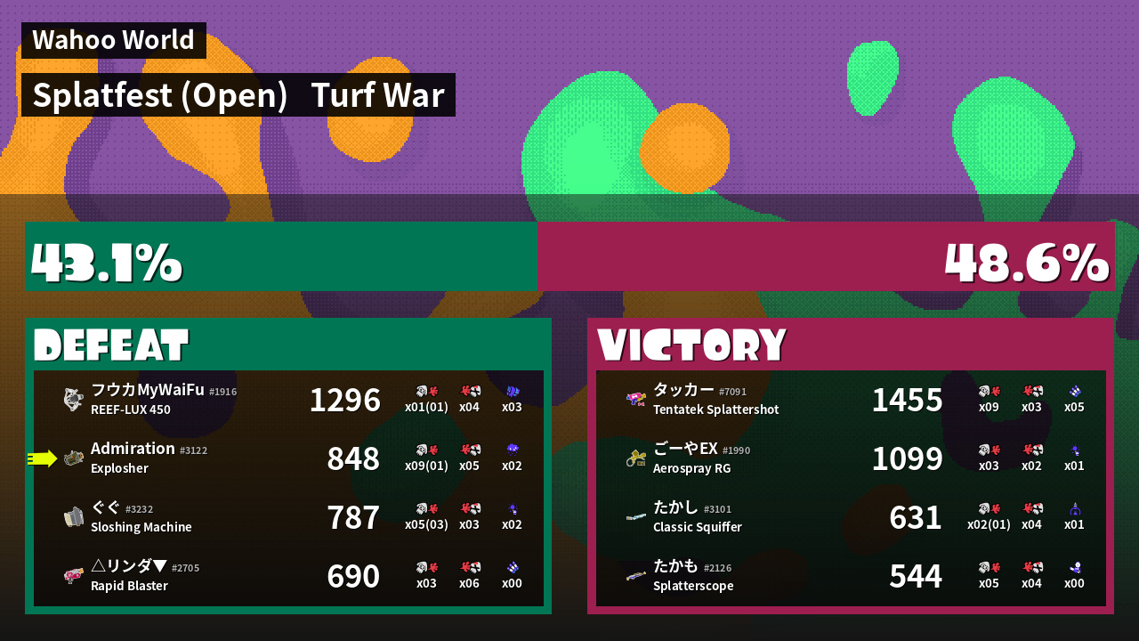 Kills / Deaths | 8 + 1 / 5 > Kill Ratio: 1.60 | ||