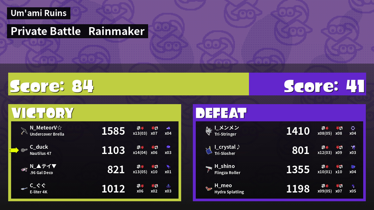 Kills / Deaths | 10 + 4 / 6 > Kill Ratio: 1.67 | ||