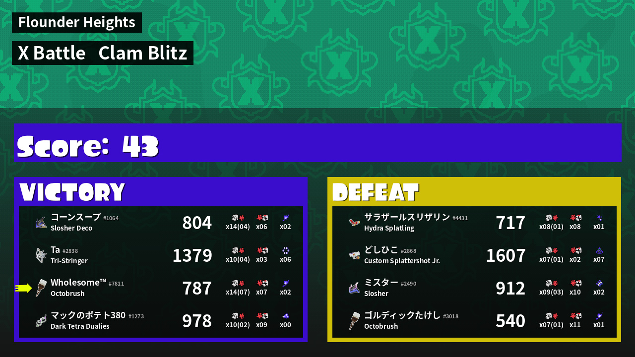 Kills / Deaths | 7 + 7 / 7 = Kill Ratio: 1.00 | ||