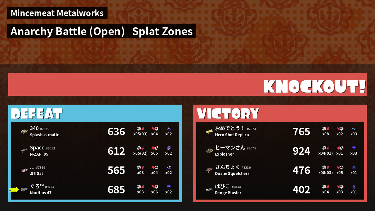 | Mode | Splat Zones - Anarchy Battle (Open) | ||