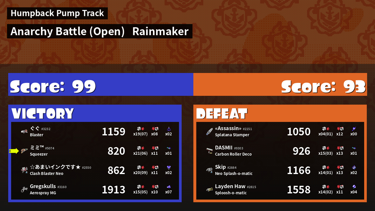 | Mode | Rainmaker - Anarchy Battle (Open) | ||