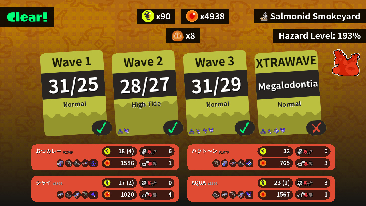 | Boss Salmonid | 12 | 13 | 23 | 19 |