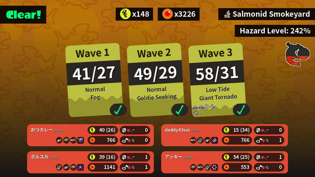 | Boss Salmonid | 6 | 5 | 7 | 6 |