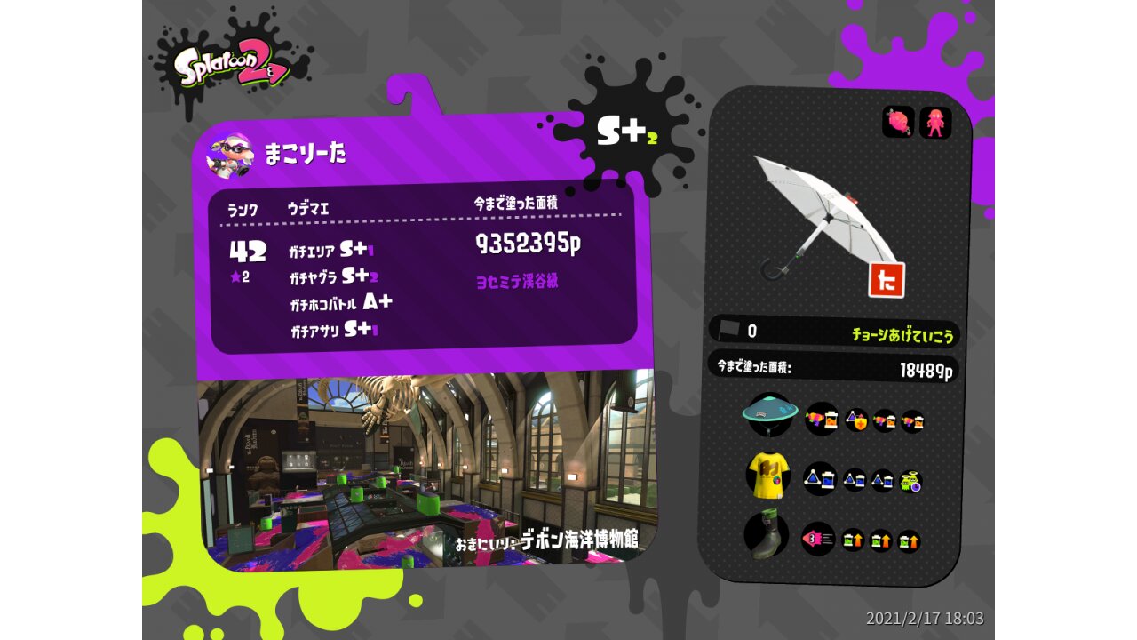 | Weapon | Kensa Undercover Brella ( Torpedo, Ink Armor) | |||||||||||||||||||||||||||||||||||||