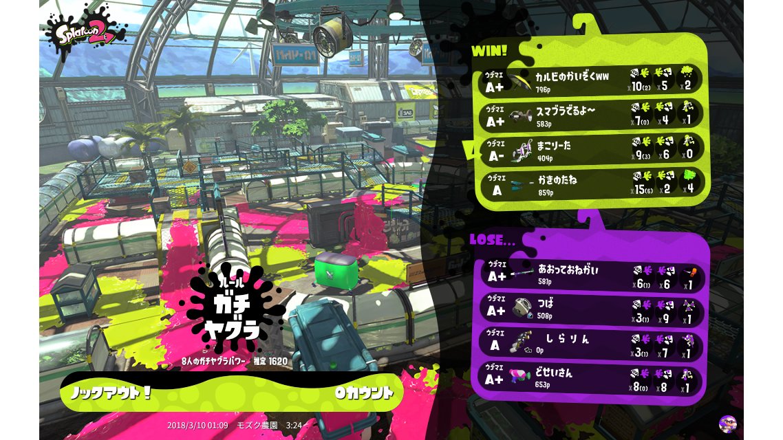 | Name | Weapon | Level | Rank | Inked | k+a/sp | k/d |