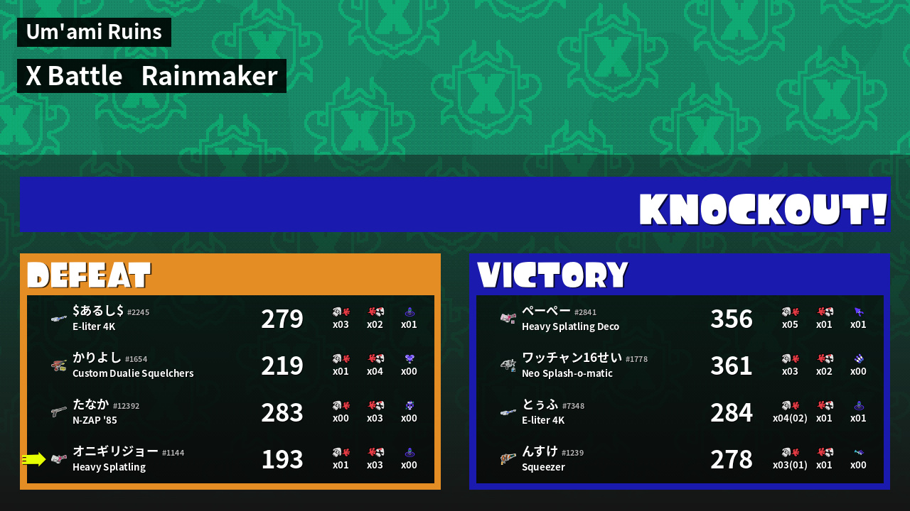 | Weapon | Heavy Splatling ( Sprinkler / Wave Breaker) | ||