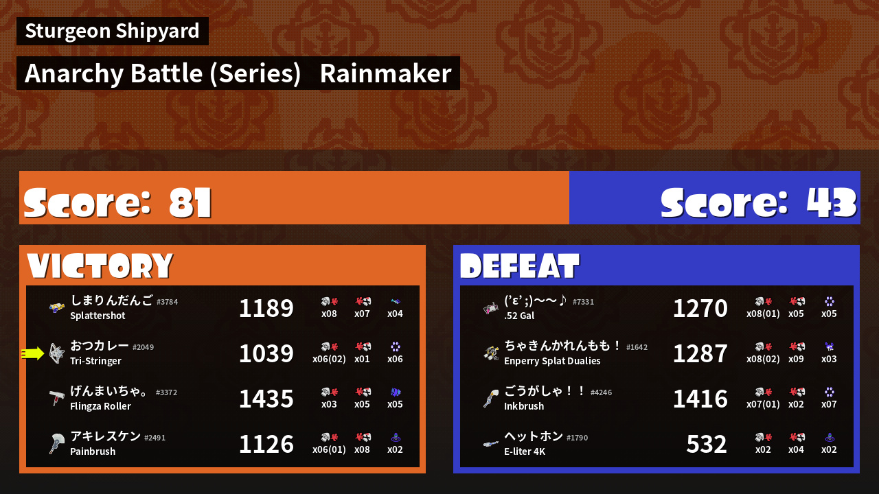 | Mode | Rainmaker - Anarchy Battle (Series) |