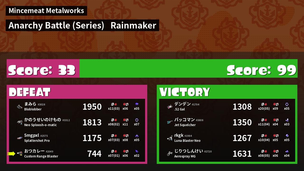 | Mode | Rainmaker - Anarchy Battle (Series) |