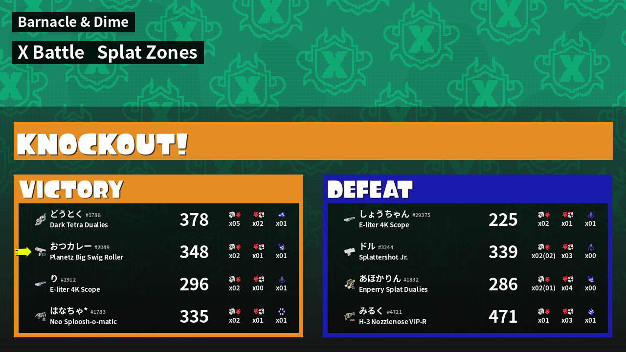 | Medals | #1 Splat Zone Inker #1 Popular Target #1 Ground Traveler |