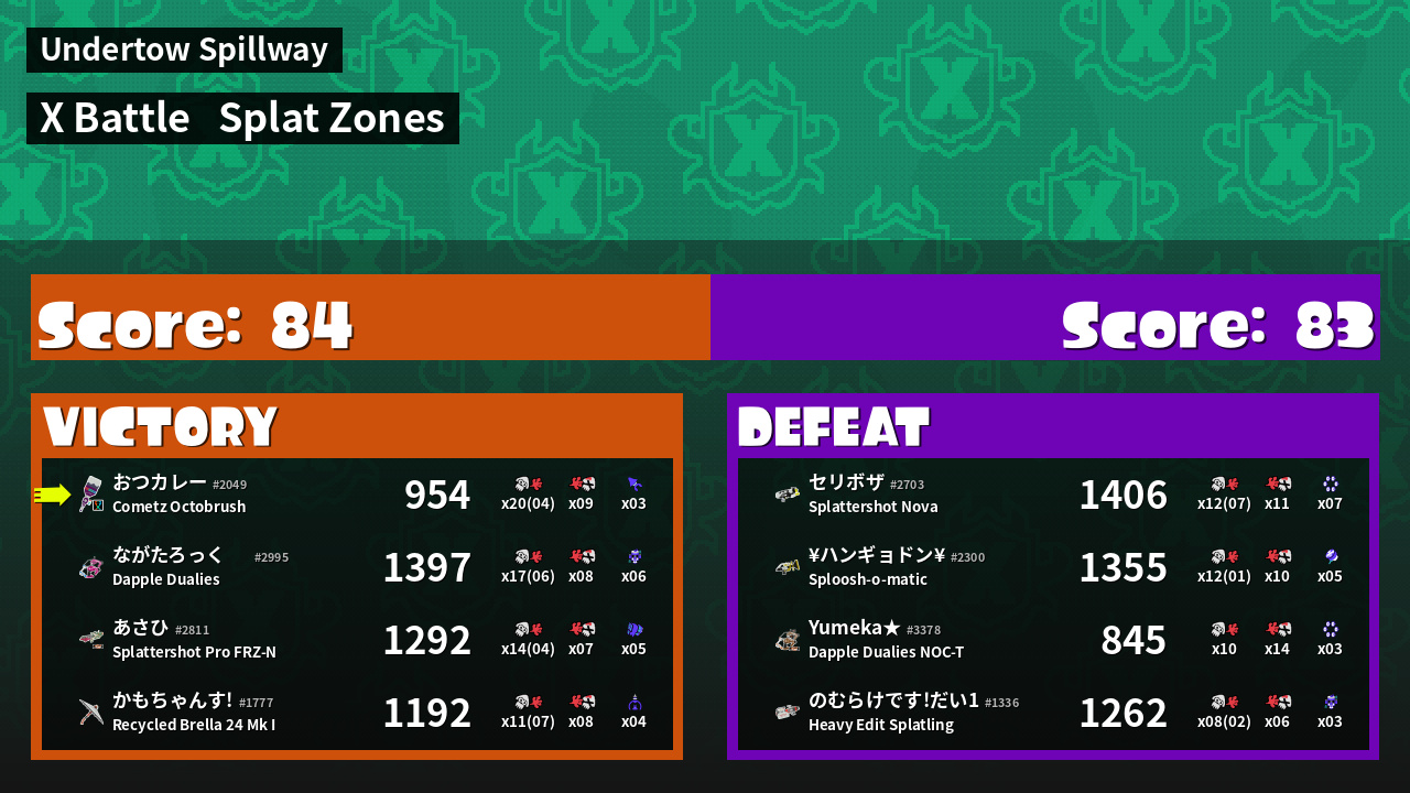 | Medals | #1 Overall Splatter #1 Splat Zone Guard #1 Enemy Splatter |