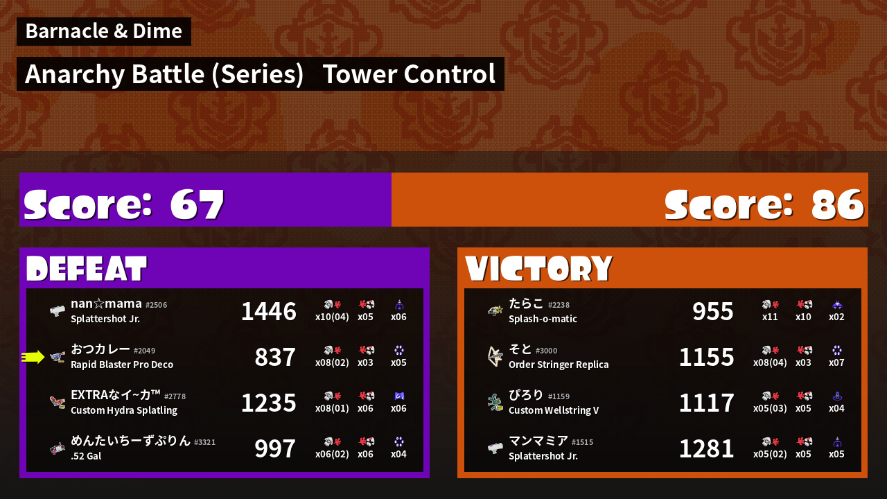 | Mode | Tower Control - Anarchy Battle (Series) |