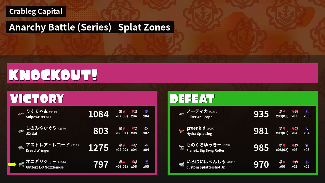 Results of まこりーた's Battle