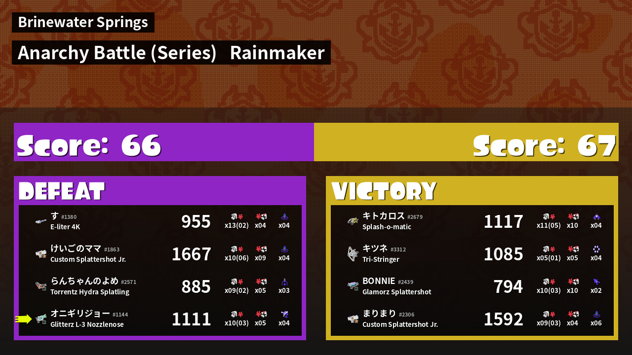 Results of まこりーた's Battle