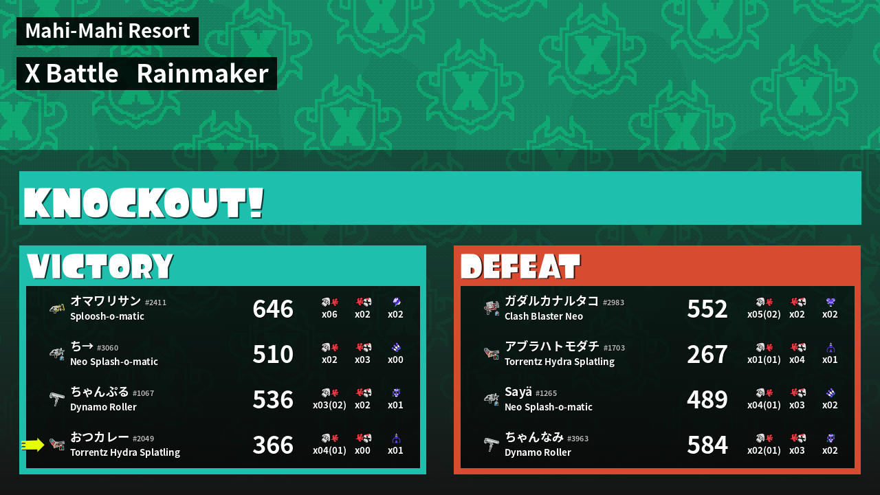 | Weapon | Torrentz Hydra Splatling ( Sprinkler / Big Bubbler) |